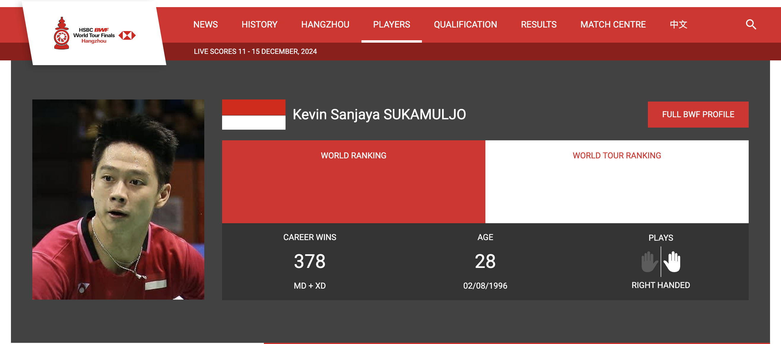 This serves as a simple hub for fans and enthusiasts of Kevin Sanjaya Sukamuljo, providing quick access to three trusted websites where you can explore his detailed statistics. Whether you’re interested in his match records, career achievements, or latest performance updates, these hyperlinks will guide you to the relevant sources.